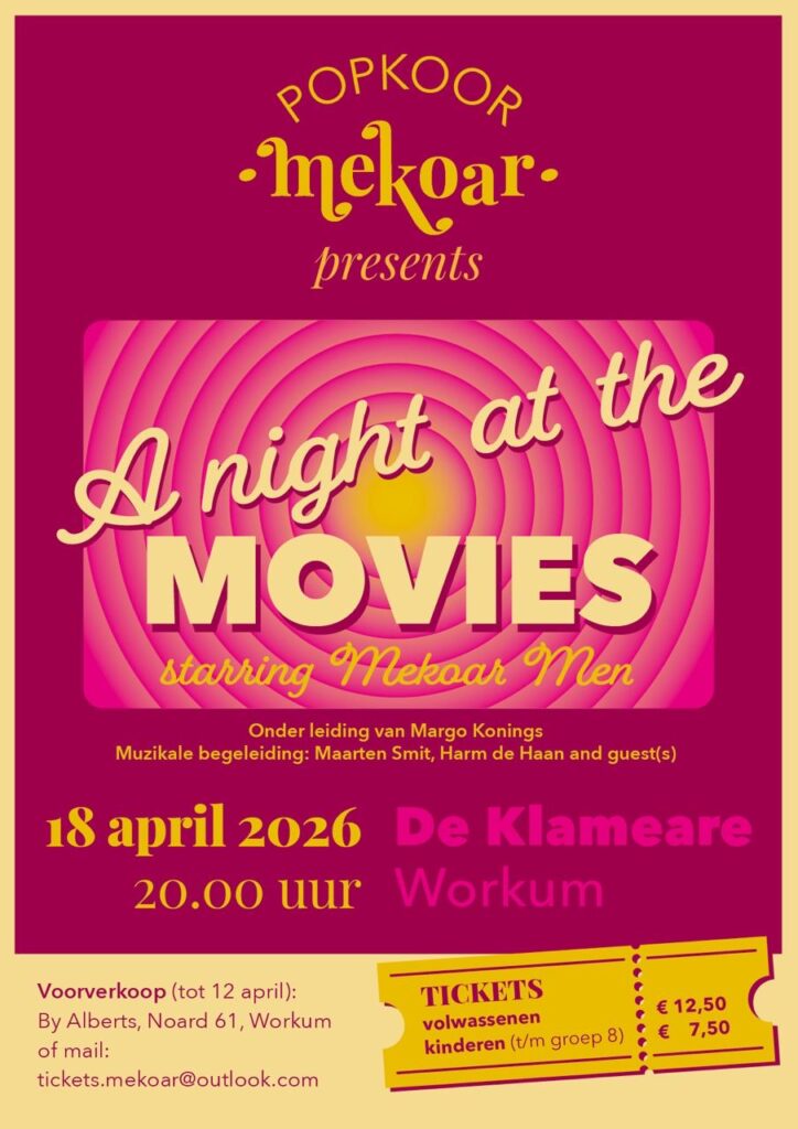 Kaarten te bestellen via tickets.mekoar@outlook.com of haal ze bij By Alberts in Workum.