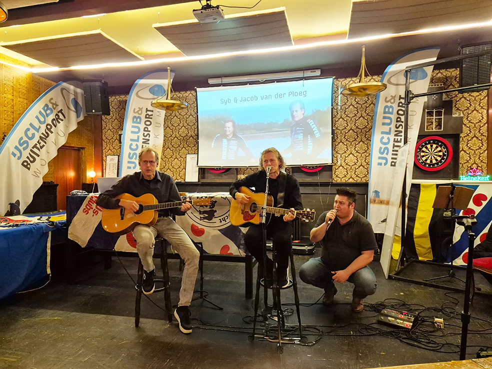 Daarmee kwam een eind aan de formele ALV en startte het feestprogramma. Tijdens de pauze werd het hangspel gespeeld; Rients Kuipers bleef maar liefst 1 minuut en 9 seconden hangen en won daarmee glorieus het spel. Na een muzikale aankondiging door Sipke, kregen Syb en Jacob van der Ploeg het woord. De broers zijn geen onbekenden van IJsclub & Buitensport; beide doen al vanaf de eerste editie aan de Workumse triatlon mee. Syb en Jacob vertelden over hun passies – muziek en sport – vanaf dat ze nog kleine jongetjes waren. De hoogte- en dieptepunten werden doorgenomen, afgewisseld met liedjes waaronder de eerste hit van Syb ‘Een teken van leven’ en uiteraard de klassieker ‘In neije dei’. De broers wisten het publiek enorm te boeien, iedereen luisterde aandachtig naar de mooie verhalen. Ze sloten af met de aankondiging van hun doel voor volgend jaar: de Iron Man in Hawaii. De avond werd afgesloten met het clublied en er was voor iedereen een prijsje uit de loterij. We kijken terug op een mooie avond en kijken alweer vooruit naar 2026. Alle data van de evenementen zijn al bekend en staan op de website (www.ijbworkum.nl). Op 1 januari vindt traditiegetrouw de Nieuwjaarsduik plaats en op 11 januari de winterse triatlon. Hopelijk krijgen we een strenge winter en kan er volop geschaatst worden op de ijsbaan! We verzoeken de leden die geen gebruik maken van automatische incasso om het lidmaatschapsgeld voor 2026 (€10) over te maken op NL59RABO0305042459 t.n.v. IJsclub Workum. Nog geen lid en wil je gebruik maken van het ijsbaanterrein? Voor maar € 10,00 per jaar is het hele gezin lid. Aanmelden kan via de website.