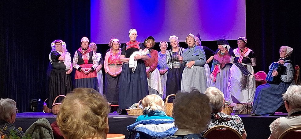 Vorige week dinsdag hield de afdeling Workum e.o. van de Zonnebloem haar feestmiddag. Vanaf 14.00 uur waren gasten en vrijwilligers welkom. Na koffie en gebak trad het viswijvenkoor Grietje Sprot uit Hindelopen op. Zeer tot genoegen van de aanwezigen (ca. 50 personen) zong het koor Friese en Nederlandse liedjes over onder ander zee, zeelui, vissers en vissersvrouwen.