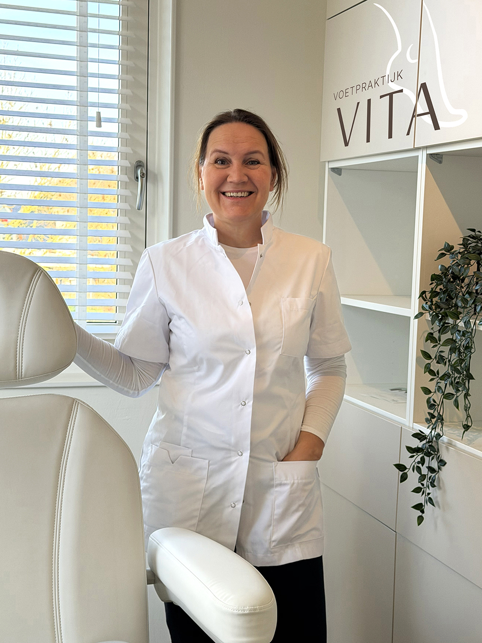 Na een loopbaan in de gezondheidszorg als verpleegkundige en praktijkondersteuner, heeft zij bewust gekozen voor een carrière switch naar een eigen praktijk in voetverzorging. ‘Ik merk dat mensen voetklachten te lang negeren, terwijl goede zorg zo’n verschil kan maken voor de mobiliteit en het algehele welzijn. Je voeten dragen je de hele dag en dat een heel leven lang. Mijn doel is, om cliënten met verzorgde en vitale voeten de deur uit te laten gaan. Ik neem de tijd voor de behandeling, werk hygiënisch en geef persoonlijk advies over dagelijkse verzorging van de voeten.’
