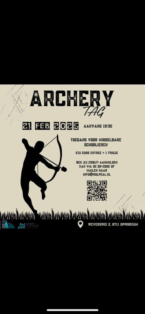Vrijdagavond 21 februari Archery Tag GAAT NIET DOOR
