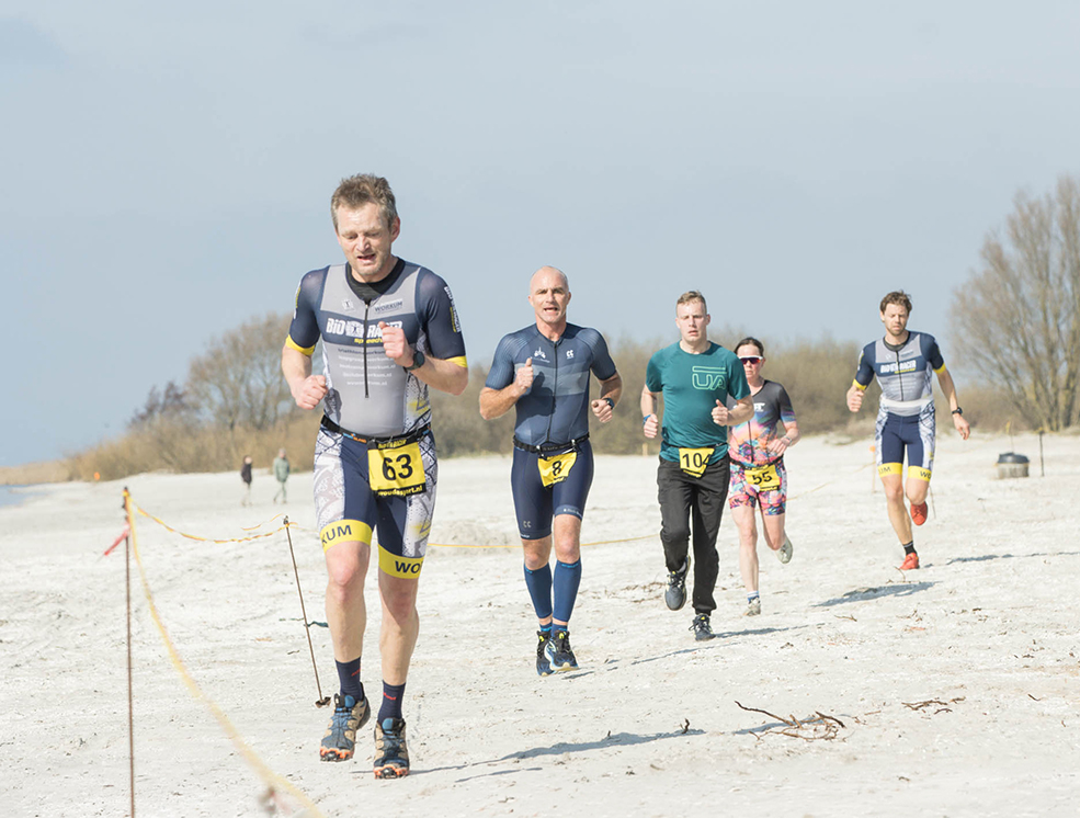 Maar liefst 81 individuele sporters en 4 duo’s stonden afgelopen zaterdag aan de start bij de crossduathlon van Workum. Om 13.30 uur ging de toeter en vertrokken de deelnemers nabij de punt van het strand voor de eerste twee rondes hardlopen. Het hardloopparcours van 2,5 km ging grotendeels over MarinaPark Beach Resort Soal (waar na afloop gedoucht kon worden). Omdat er inmiddels al veel nieuwbouw op het recreatiepark is, was het voor de organisatie wel een uitdaging om er toch een leuk crossparcours van te maken. Uiteindelijk is dat wel weer gelukt en kwamen de deelnemers via het strand weer terug bij de wisselzone.