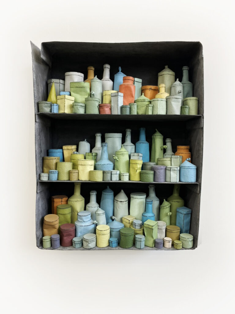 Johan de Wit (Gent, 1960) wordt in Vlaanderen gezien als een van de meest eigenzinnige stemmen in de hedendaagse beeldhouwkunst. Hij staat bekend om zijn verfijnde techniek: papieren modellen versterkt hij met hars en ijzerpoeder, waarna hij ze schuurt en verft tot het oppervlak lijkt te ademen. Pigmenten verkleuren, ijzer roest, licht en textuur blijven in beweging. Zijn werk bevindt zich in de collecties van Museum Voorlinden (Wassenaar), S.M.A.K. Gent, Nationale Bank van België en de Sanders Collectie.