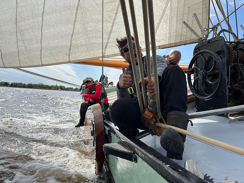Zondags was een dag met meer wind. We startten in de ‘goldfleet’, de finale met de schepen die zaterdag het beste gevaren hebben. Vanwege de wind startten we met een kleinere fok en een rif in het grootzeil. Het was een woelige wedstrijd, voor ons een aantal spannende boei-rondingen en helaas een paar keer ‘vuile’ wind… 15e plek (van de 19 in de klasse). Maar niet ontevreden en lekker uitgewaaid.